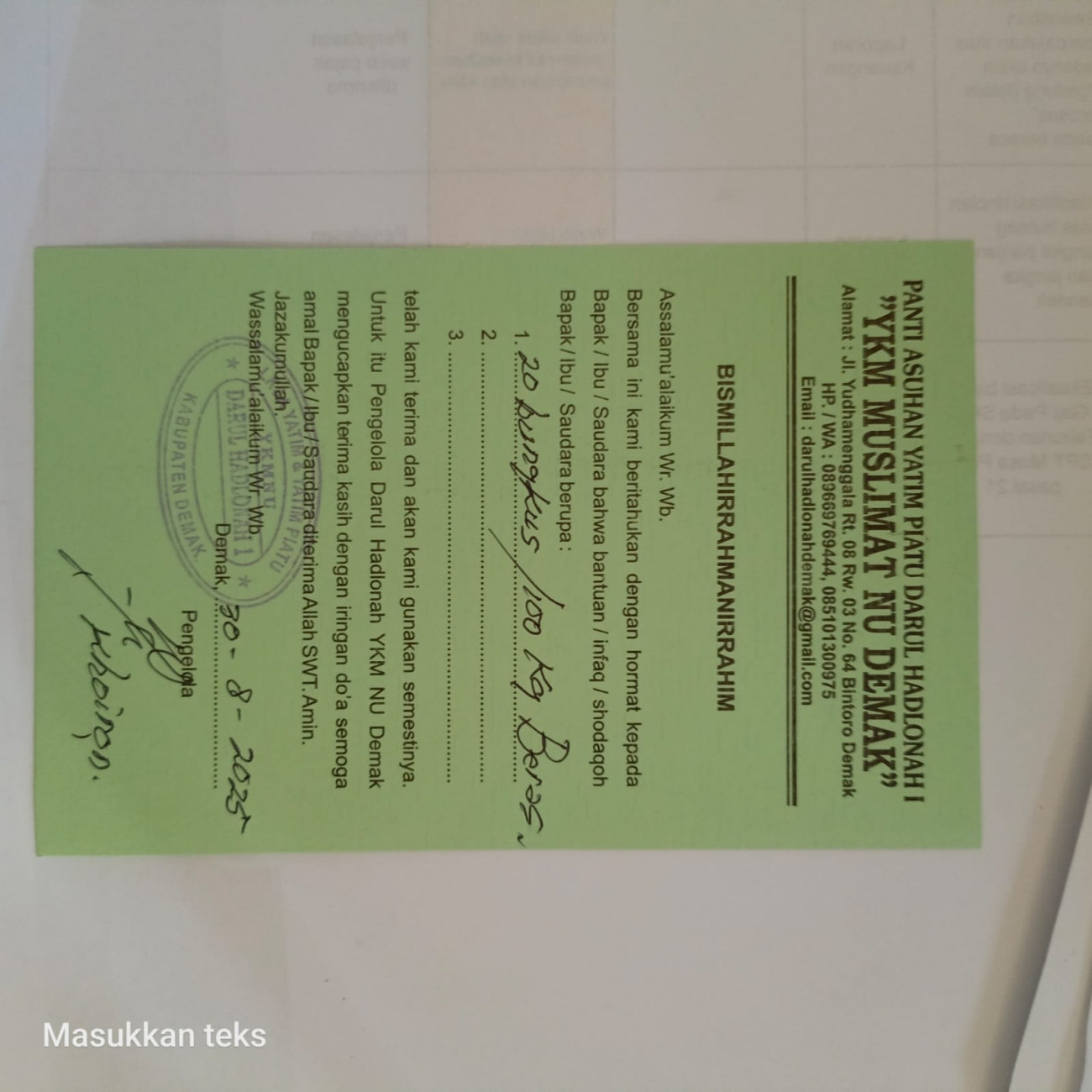 | Kegiatan | : | PANTI ASUHAN DARUL HADLONAH YATIM PIATU DEMAK |